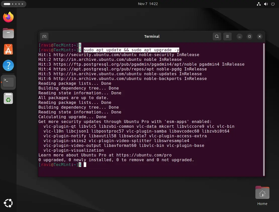 Updating via the terminal gives you more control and visibility over the process, which is especially useful for servers, headless systems, or when you want to see exactly which packages are being updated.