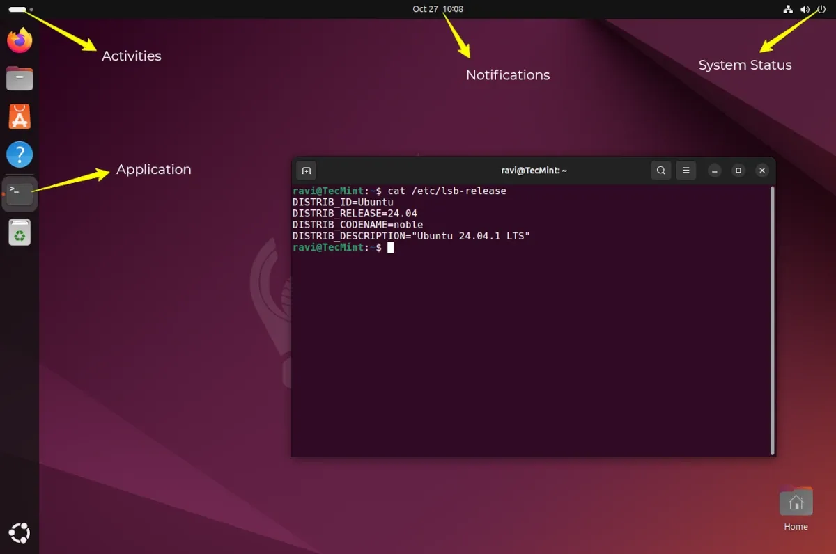 When you first log into Ubuntu, youβre greeted with a clean and minimal desktop that focuses on simplicity, offering just a few key elements designed to keep your workspace neat and distraction-free.